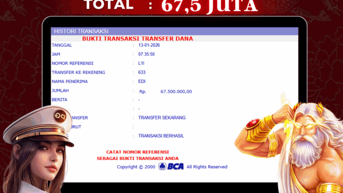 NAGA303 mengucapkan selamat kepada user id : EDI*** yang telah berhasil mendapatkan jackpot pada permainan SLOT DI MAHJONG WINS. Kemenangan sebesar Rp 67.500.000,-. telah dibayarkan LUNAS oleh pihak naga303 kepada pemilik user id setelah yang bersangkutan mengisi formulir withdraw. Proses pencairan dana berlangsung sangat cepat hanya dalam waktu 6-11 menit sudah berada dalam rekening pemilik user id. Bukti transfer yang dapat anda lihat adalah bukti SAH / VALID yang langsung di dapatkan melalui bukti transaksi dari Bank yang digunakan untuk pengiriman dana pada rekening pemilik user id. Terima kasih kami sampaikan kepada para pengguna setia naga303 yang telah menggunakan situs kami, sebagai Bandar Terpercaya yang pastinya membayar semua kemenangan member hingga lunas. Apakah Naga303 PENIPU ? Reputasi “NAGA303 TERPERCAYA” sudah sangat melekat. puluhan hingga ratusan ribu pengguna setia NAGA303 tetap menggunakan situs terbesar dan terbaik di Indonesia ini. Hapus rasa was-was dan khawatir anda, kemenangan anda berapapun PASTI dibayarkan hingga lunas.