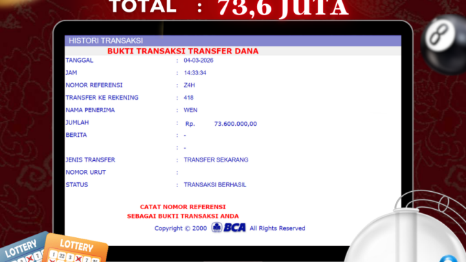 MEMBER NAGA303 MENERIMA PELUNASAN KEMENANGAN JACKPOT TOGEL DI SYDNEY LOTTO Rp 73.600.000,- LUNAS