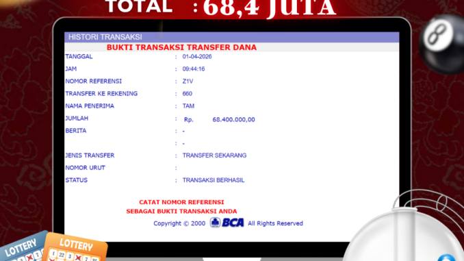 NAGA303 mengucapkan selamat kepada user id : PUT*** yang telah berhasil mendapatkan jackpot pada permainan TOGEL DI AMAZON 3D. Kemenangan sebesar Rp 68.400.000,-. telah dibayarkan LUNAS oleh pihak naga303 kepada pemilik user id setelah yang bersangkutan mengisi formulir withdraw. Proses pencairan dana berlangsung sangat cepat hanya dalam waktu 6-11 menit sudah berada dalam rekening pemilik user id. Bukti transfer yang dapat anda lihat adalah bukti SAH / VALID yang langsung di dapatkan melalui bukti transaksi dari Bank yang digunakan untuk pengiriman dana pada rekening pemilik user id. Terima kasih kami sampaikan kepada para pengguna setia naga303 yang telah menggunakan situs kami, sebagai Bandar Terpercaya yang pastinya membayar semua kemenangan member hingga lunas. Apakah Naga303 PENIPU ? Reputasi “NAGA303 TERPERCAYA” sudah sangat melekat. puluhan hingga ratusan ribu pengguna setia NAGA303 tetap menggunakan situs terbesar dan terbaik di Indonesia ini. Hapus rasa was-was dan khawatir anda, kemenangan anda berapapun PASTI dibayarkan hingga lunas.