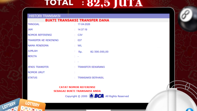 NAGA303 JACKPOT TOGEL DI JAKARTA 4D Rp 82.500.000,- LUNAS