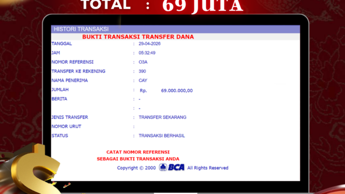 NAGA303 mengucapkan selamat kepada user id : YOL*** yang telah berhasil mendapatkan jackpot pada permainan LIVE CASINO DI DUEL DICE. Kemenangan sebesar Rp 69.000.000,-. telah dibayarkan LUNAS oleh pihak naga303 kepada pemilik user id setelah yang bersangkutan mengisi formulir withdraw. Proses pencairan dana berlangsung sangat cepat hanya dalam waktu 6-11 menit sudah berada dalam rekening pemilik user id. Bukti transfer yang dapat anda lihat adalah bukti SAH / VALID yang langsung di dapatkan melalui bukti transaksi dari Bank yang digunakan untuk pengiriman dana pada rekening pemilik user id. Terima kasih kami sampaikan kepada para pengguna setia naga303 yang telah menggunakan situs kami, sebagai Bandar Terpercaya yang pastinya membayar semua kemenangan member hingga lunas. Apakah Naga303 PENIPU ? Reputasi “NAGA303 TERPERCAYA” sudah sangat melekat. puluhan hingga ratusan ribu pengguna setia NAGA303 tetap menggunakan situs terbesar dan terbaik di Indonesia ini. Hapus rasa was-was dan khawatir anda, kemenangan anda berapapun PASTI dibayarkan hingga lunas.