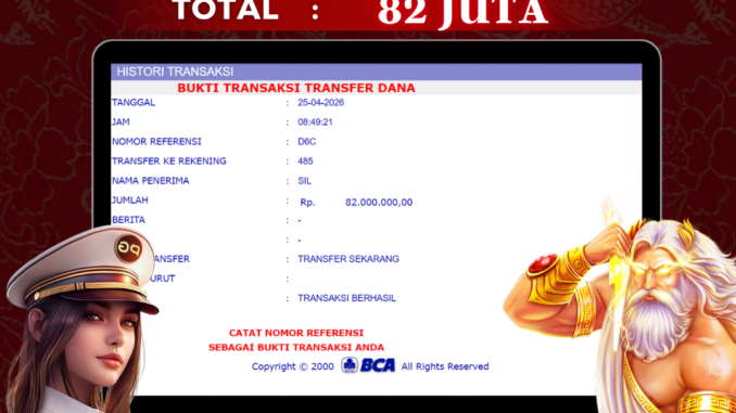 NAGA303 mengucapkan selamat kepada user id : BAR*** yang telah berhasil mendapatkan jackpot pada permainanan SLOT DI GATES OF GATOT KACA DICE Kemenangan sebesar Rp 82.000.000,-. telah dibayarkan LUNAS oleh pihak naga303 kepada pemilik user id setelah yang bersangkutan mengisi formulir withdraw. Proses pencairan dana berlangsung sangat cepat hanya dalam waktu 6-11 menit sudah berada dalam rekening pemilik user id. Bukti transfer yang dapat anda lihat adalah bukti SAH / VALID yang langsung di dapatkan melalui bukti transaksi dari Bank yang digunakan untuk pengiriman dana pada rekening pemilik user id. Terima kasih kami sampaikan kepada para pengguna setia naga303 yang telah menggunakan situs kami, sebagai Bandar Terpercaya yang pastinya membayar semua kemenangan member hingga lunas. Apakah Naga303 PENIPU ? Reputasi “NAGA303 TERPERCAYA” sudah sangat melekat. puluhan hingga ratusan ribu pengguna setia NAGA303 tetap menggunakan situs terbesar dan terbaik di Indonesia ini. Hapus rasa was-was dan khawatir anda, kemenangan anda berapapun PASTI dibayarkan hingga lunas.